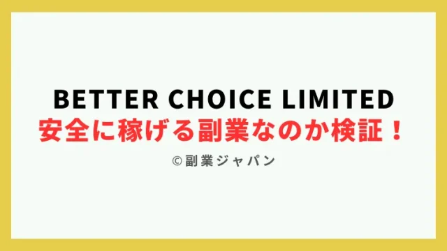 副業 BETTER CHOICE LIMITED(唐莉萍)の副業は安全?詐欺の不安が無いか検証! 2023年12月6日 副業スペシャリストtanaka https://jobchoice.jp/wp-content/uploads/2024/09/fukugyo-freedom-logo.png 副業詐欺からの解放「副業フリーダム」 今回は「唐莉萍」が運営責任者を務めている「BETTER CHOICE LIMITED」という副業業者を検証していきます。 販売 …