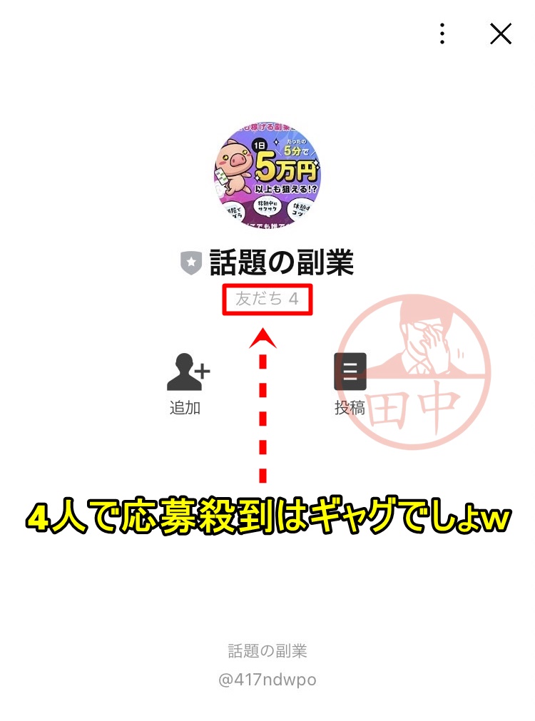 検証日時点で株式会社CFC(山口孝彦)の公式LINE友達数は僅か4名…。