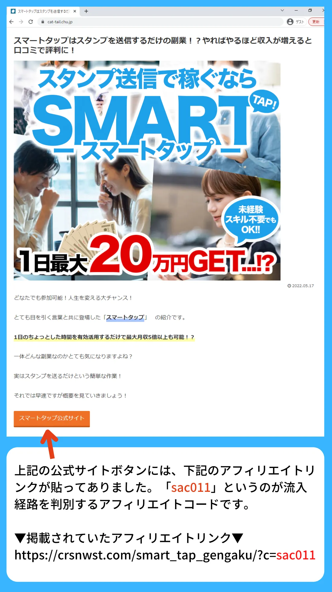 スマートタップを高評価するブログには、必ずスマートタップの公式サイトへアクセスを促すリンクが貼ってあります。