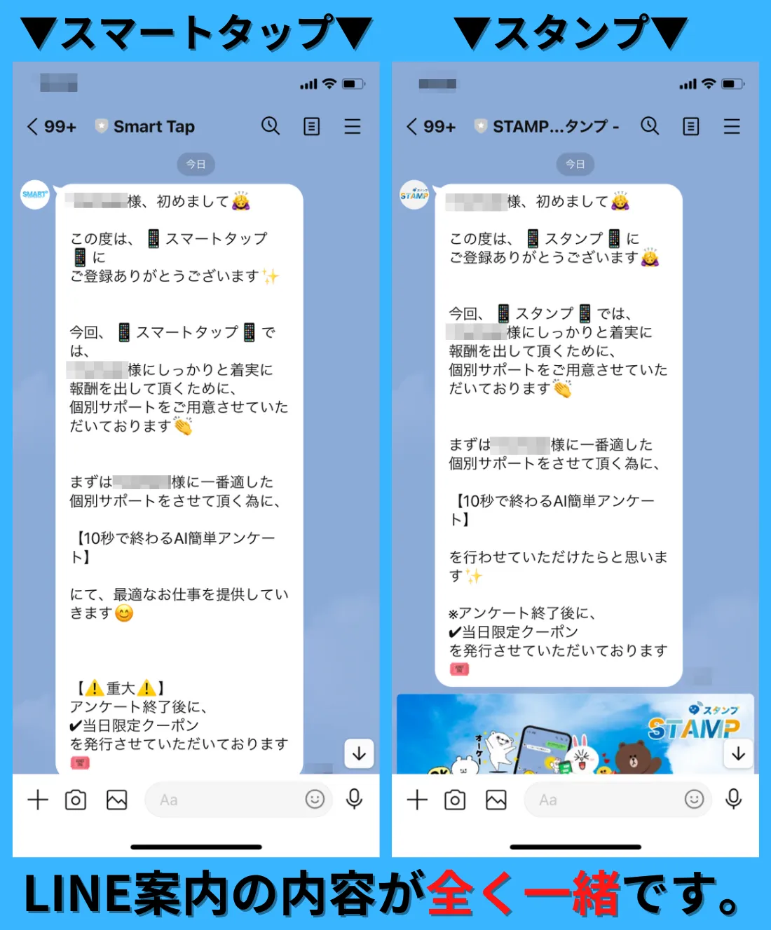 LINE案内の内容が全く一緒