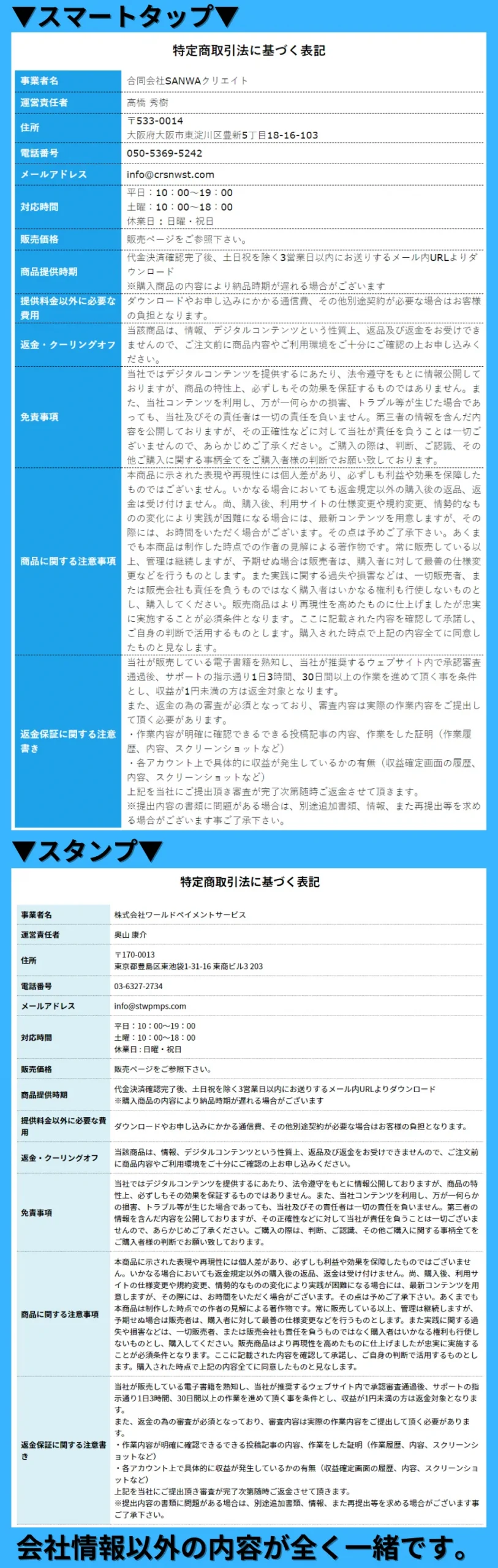 特定商取引法に基づく表記の内容が全く一緒