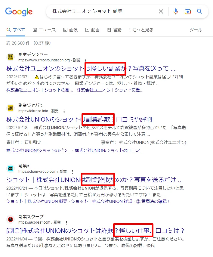株式会社ユニオン時代は「ショット」という名称の副業サイトを運営していましたが、インターネット上の評価は最悪。