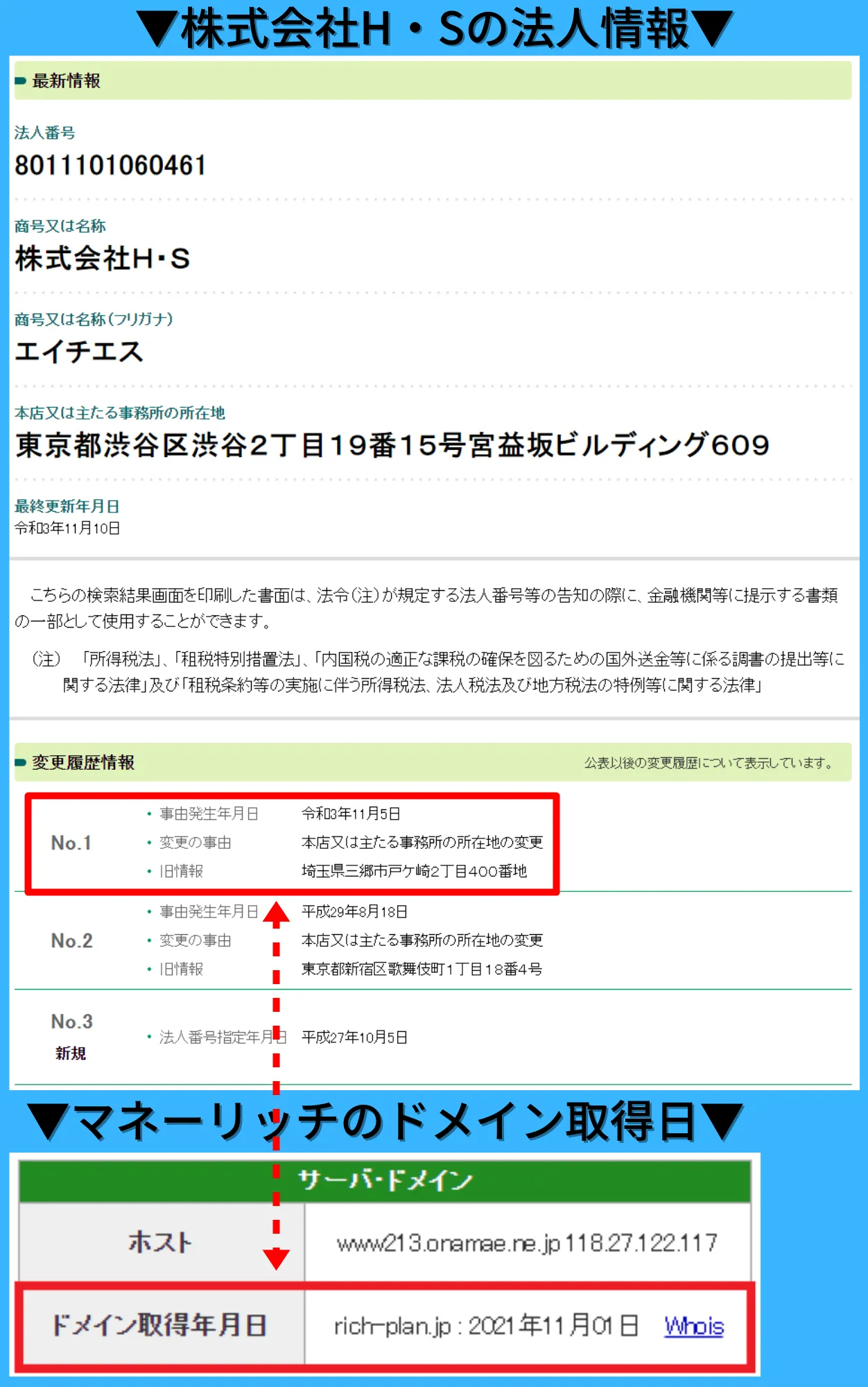 現所在地に移転したのは2021年11月で、先ほど紹介したマネーリッチのドメイン取得時期とちょうど重なります。
