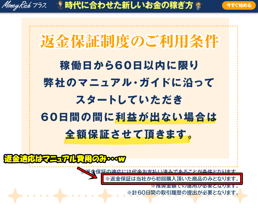 マネーリッチでは返金保証制度が用意されていますが、返金条件が定められています。