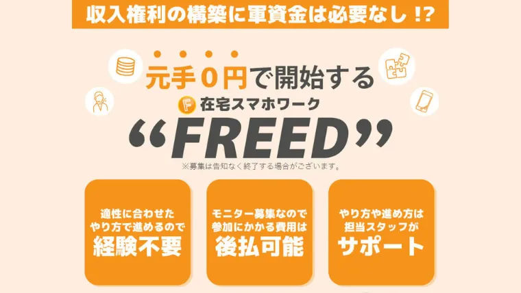 FREED(フリード)とは「1日30分の作業でもOK!ライフスタイルに合わせて取り組める」と謳った最新副業です。