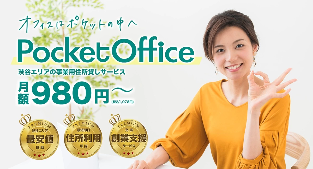 本店所在地として登記されている「東京都渋谷区桜丘町4-14 5F」を調べてみると、「PocketOffice」というバーチャルオフィスを使用していることが分かりました。