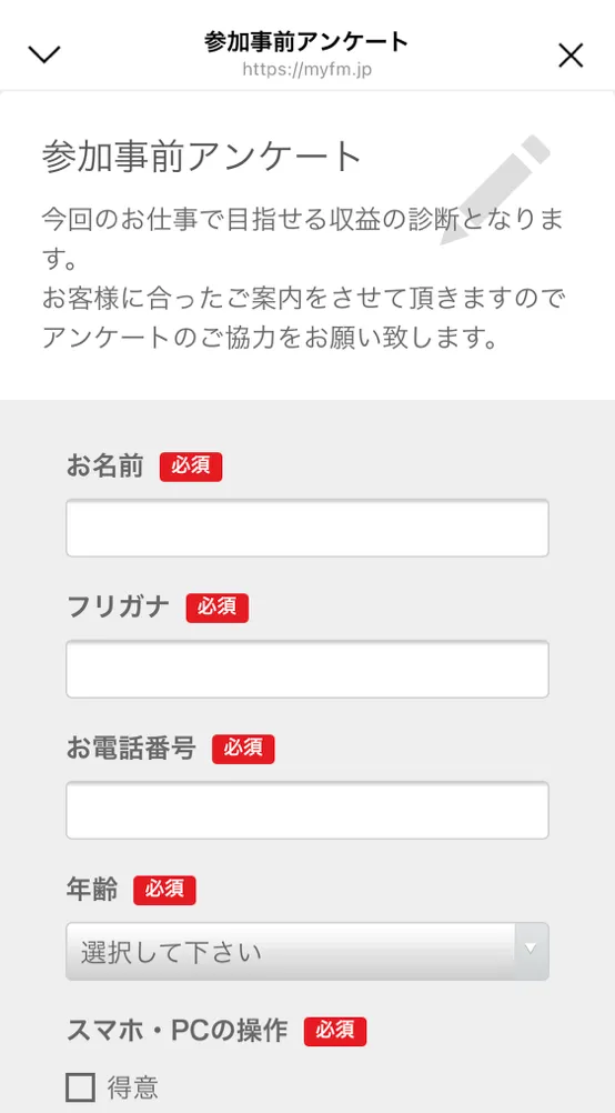 Gold Ship(ゴールドシップ)の公式LINEに登録直後、アンケートに答えるよう促され、送られてきた回答フォームがこちら↓