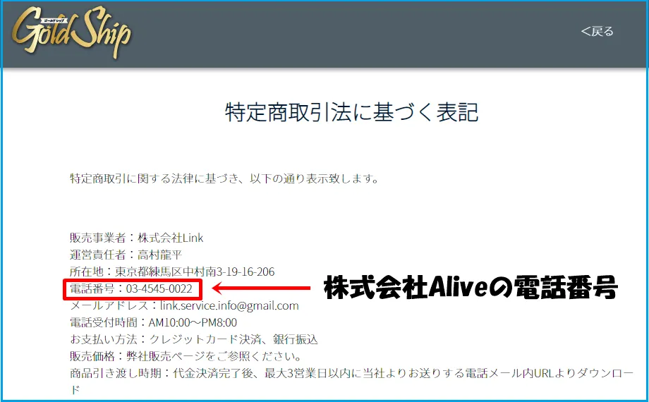 以下、Gold Ship(ゴールドシップ)の運営会社情報↓