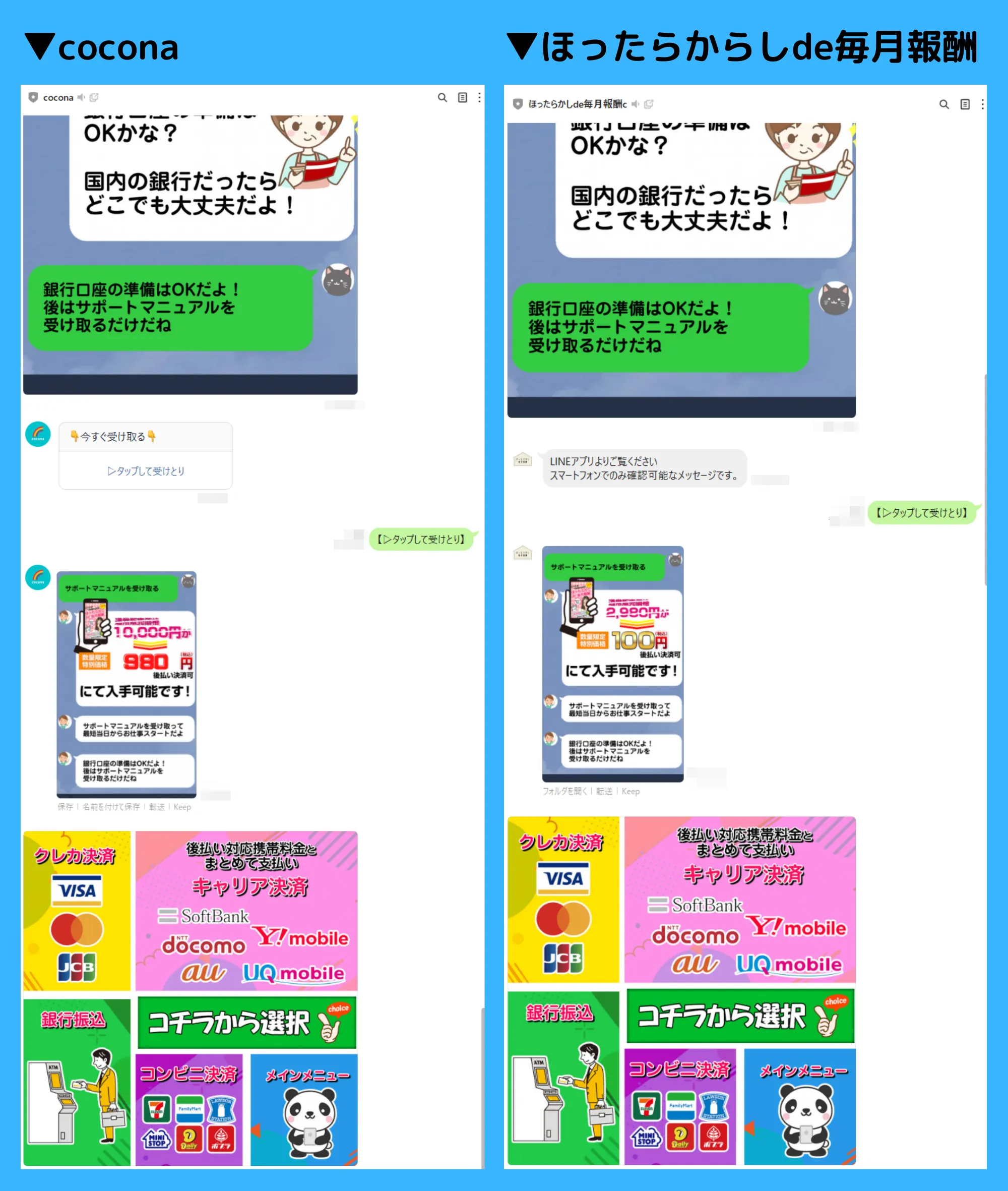 coconaから送られてくるLINEメッセージは、冒頭で紹介した「ゆるふわワーク(ほったらからしde毎月報酬)」と全く一緒でした。