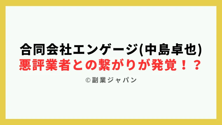 合同会社エンゲージ(中島卓也)は、被害報告が多数挙がっている副業業者と系列の可能性が濃厚でした。