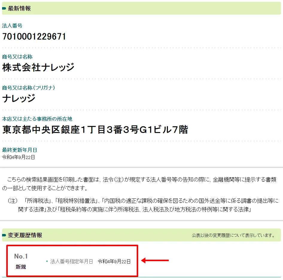 株式会社ナレッジについて調べてみると、2022年9月22日に法人番号の指定を受けたばかりの新会社ということが判明。