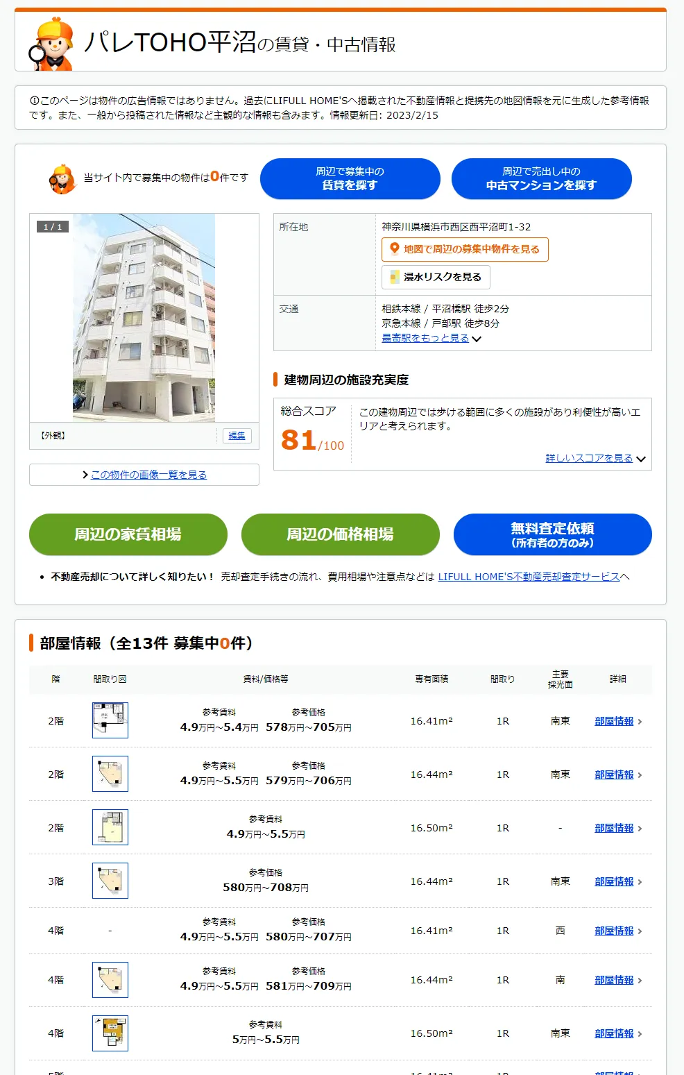 本店所在地として登記されている「パレTOHO平沼」を調べてみると、築34年の賃貸マンションでした。