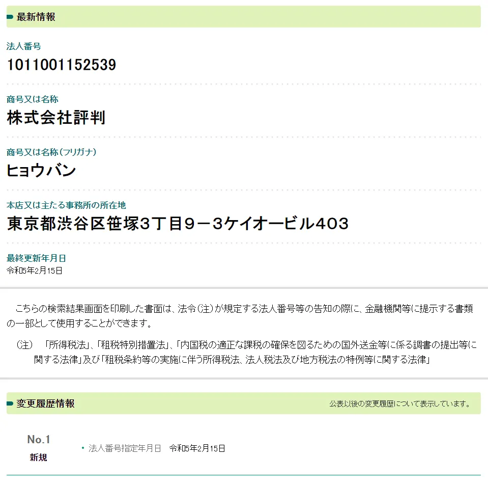 株式会社評判の法人情報を調べると2022年2月15日が登記日だったので、設立されたばかりで利用者が少ない可能性が高いです。
