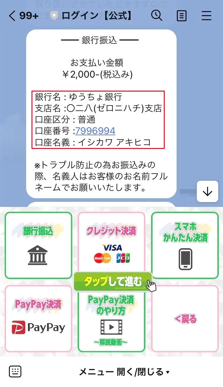 ↓実際の口座案内↓