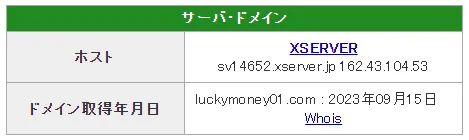 ラッキーまねーがサイトURLを取得した年月日を調べてみると、2023年9月15日ということが判明。
