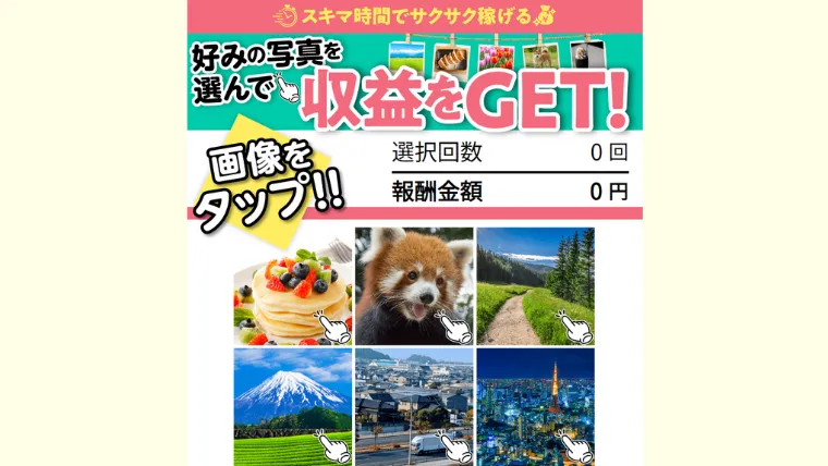 株式会社メディア(藤井弘一)の副業は、好みの写真を選んでタップした回数分の収益が稼げるとのこと。