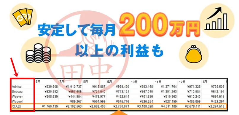 ・具体的な収益が表示される収益画面のスクリーンショット