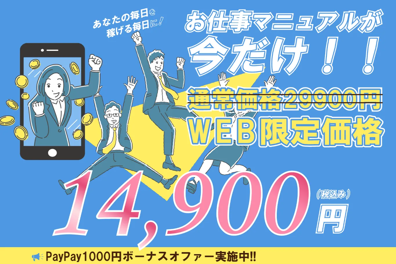 お仕事マニュアルの費用は、発生した収益から支払うことができる後払いが用意されています。
