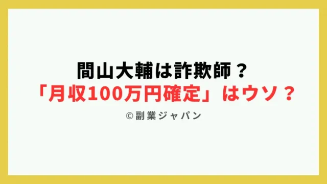 副業 間山大輔の「月収100万円勝ち確定」はウソ?口コミや経歴、料金などを検証してみた! 2023年3月23日 副業スペシャリストtanaka https://jobchoice.jp/wp-content/uploads/2024/09/fukugyo-freedom-logo.png 副業詐欺からの解放「副業フリーダム」 間山大輔は「月収100万円勝ち確定」と謳って物販商材を高額販売している人物です。 「月収100万円勝ち確定」などと断定的判断の提供を行 …