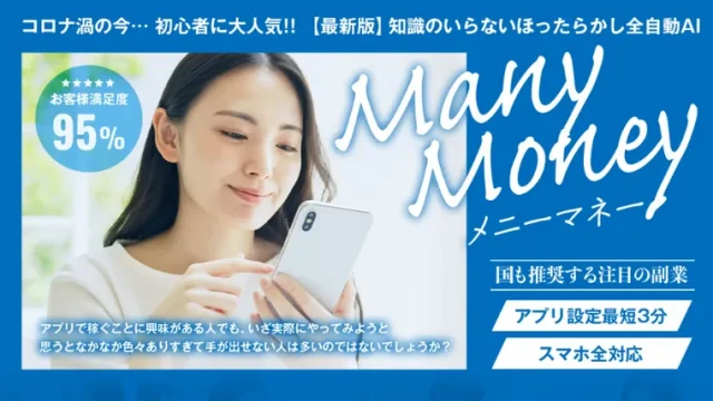 副業 メニーマネー(Many Money)は副業詐欺?口コミ炎上の悪徳業者と系列だった? 2023年2月20日 副業スペシャリストtanaka https://jobchoice.jp/wp-content/uploads/2024/09/fukugyo-freedom-logo.png 副業詐欺からの解放「副業フリーダム」 メニーマネー(Many Money)は、ビジネスの知識が無い初心者でも全自動で稼げると謳った副業サイトです。 販売事業者は株式会社re …