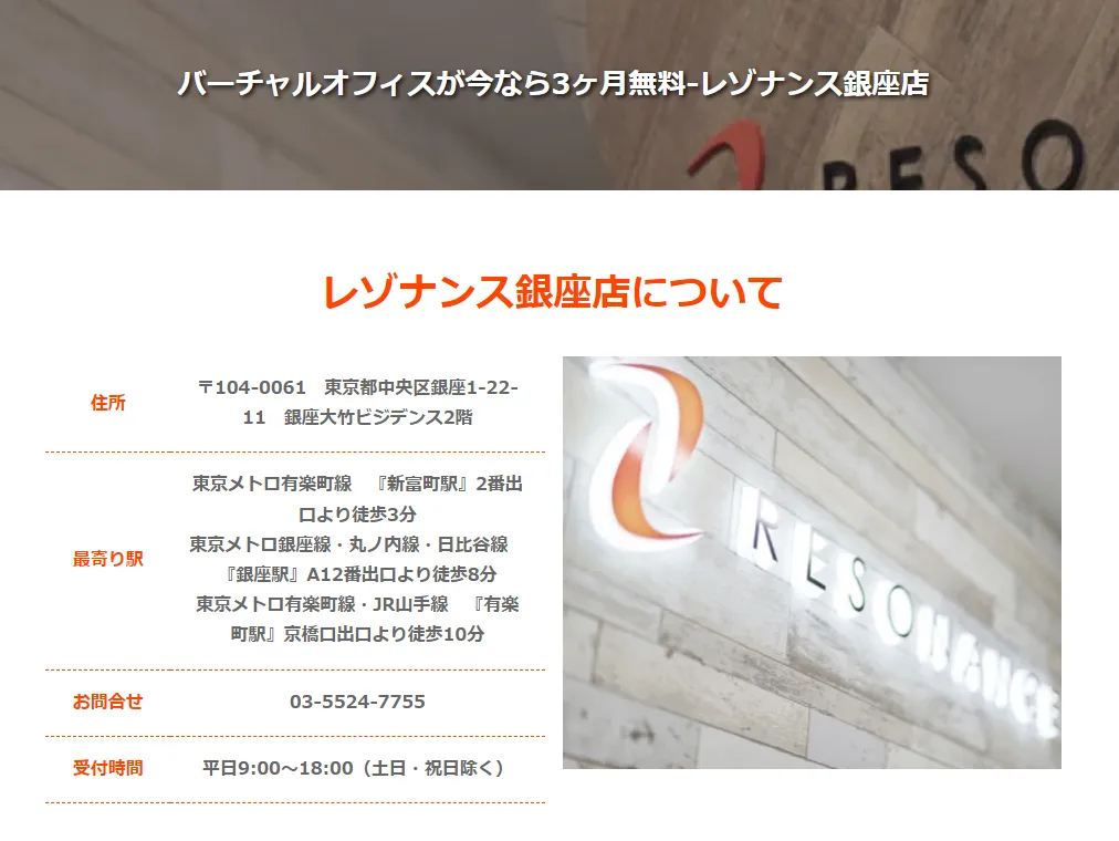 本店所在地は「レゾナンス銀座」というバーチャルオフィスでした。