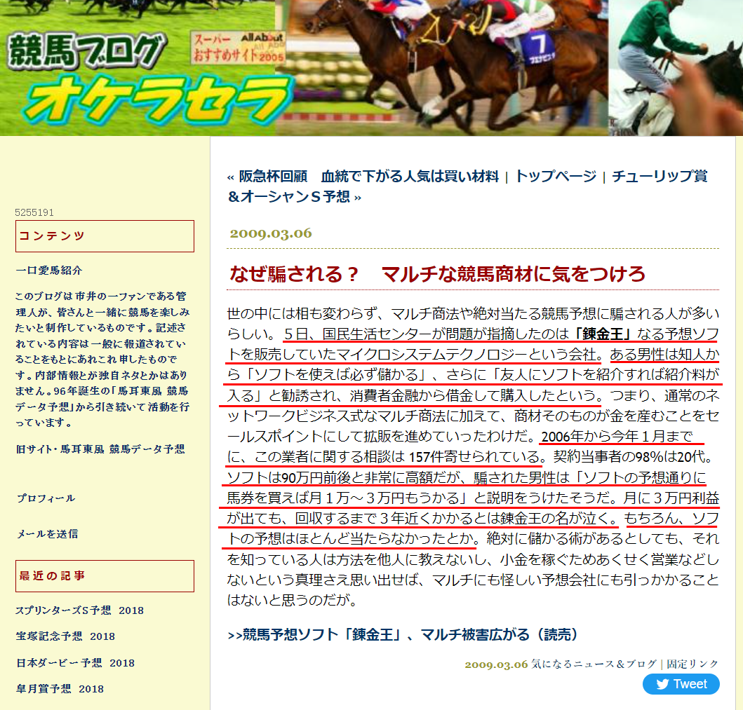 - 2006年頃から投資競馬ツール「錬金王」を販売