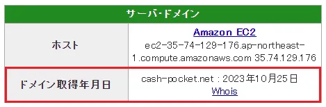 キャッシュポケットのサイトURLが取得された年月日を調べてみると、2023年10月25日ということが判明。