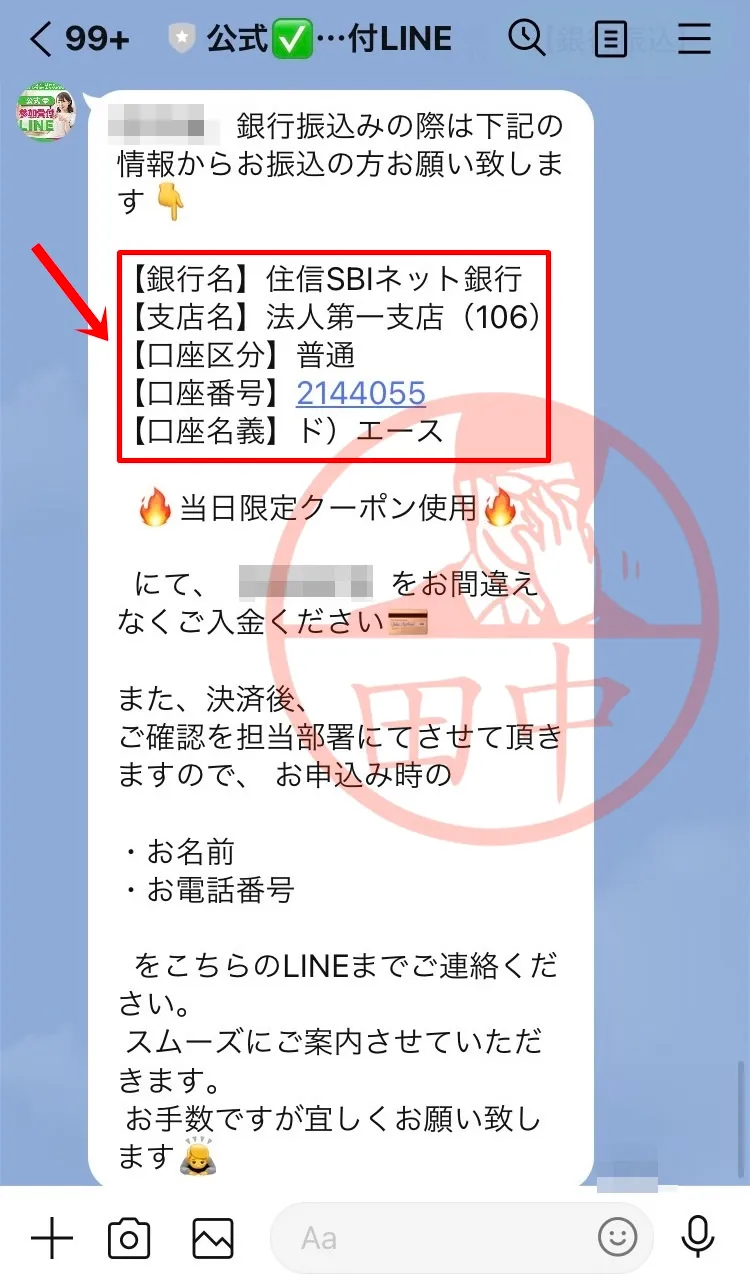 LINEで案内される初期費用の振込先は「合同会社エース」という全く別の法人口座でした。