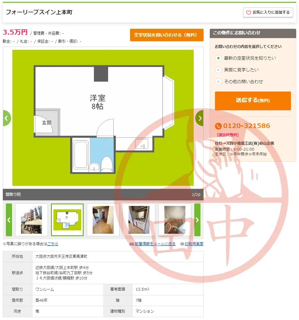所在地 〒543-0021 大阪府大阪市天王寺区東高津町6-19-305
