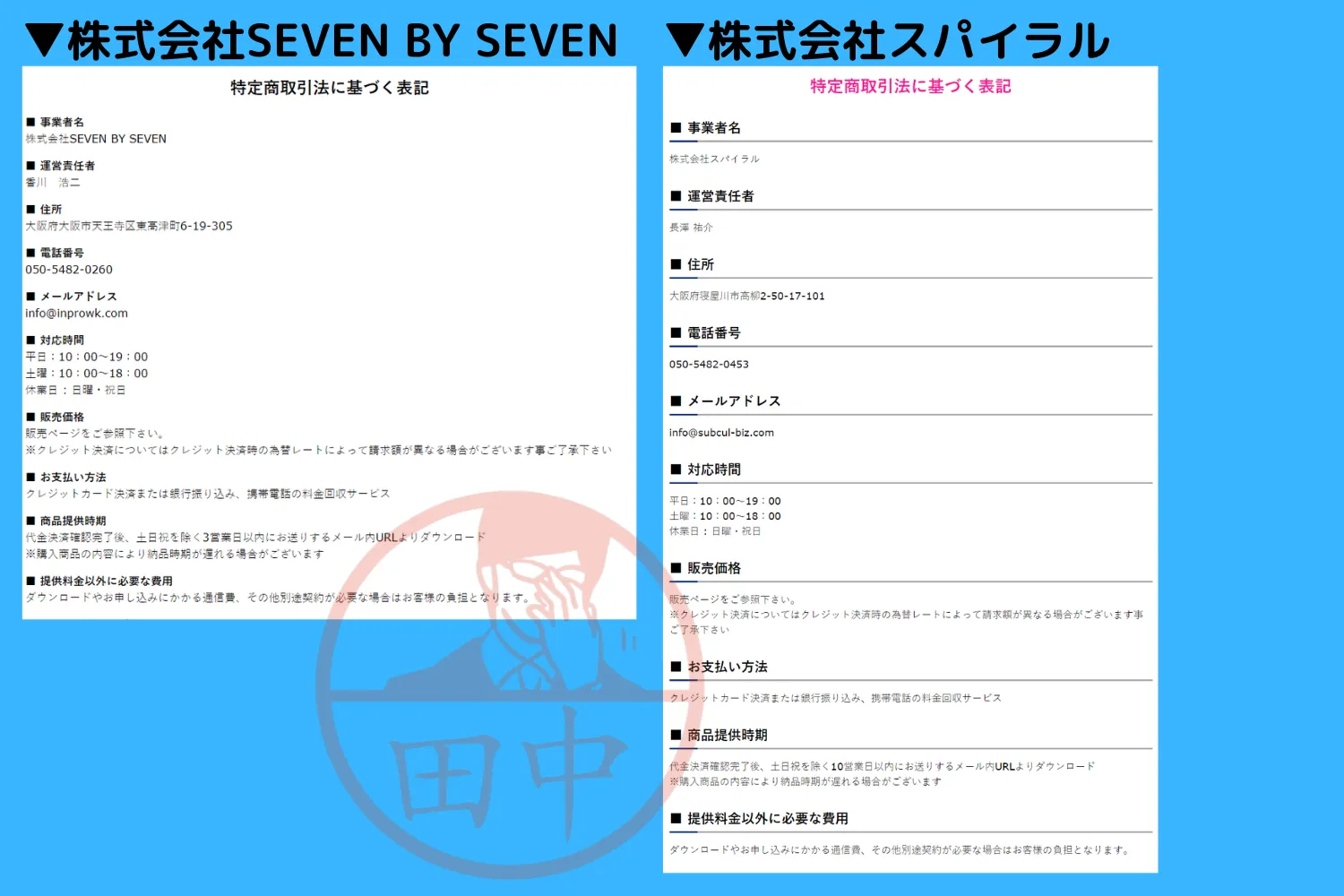 ↓両社の特定商取引法に基づく表記↓