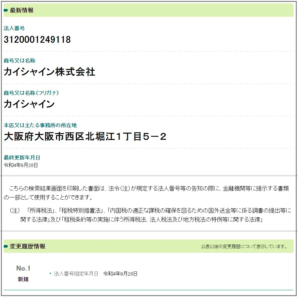 カイシャイン株式会社の法人情報を調べてみると、2022年9月頃に設立されたばかりの新しい会社でした。