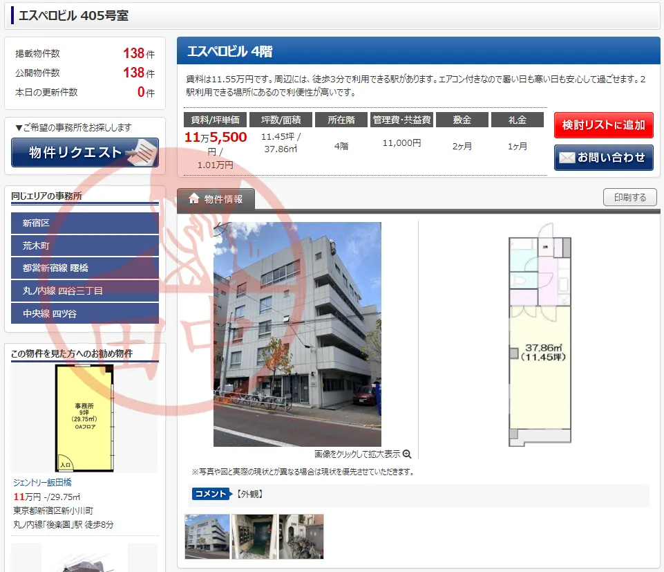 所在地「エスペロビル405」を調べてみた結果、賃料11.5万円の格安事務所で運営を行っていることが分かりました。