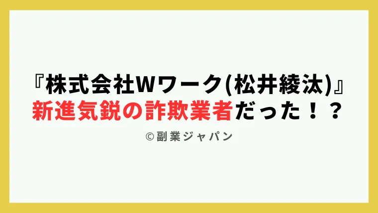 株式会社Wワーク(松井綾汰)は、完全自動で副収入が稼げると謳った副業業者です。